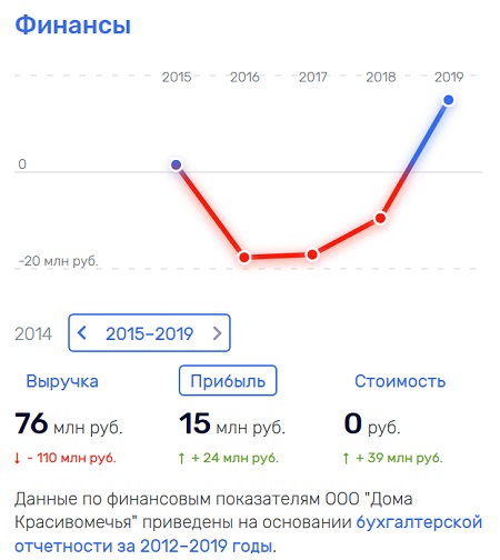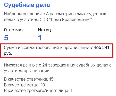 6. ООО «Дома Красивомечья» (г.Ефремов) — в 2018 году убыток 9,7 миллионов рублей, в 2019 году — прибыль 15 миллионов рублей, исковые требования на 7,465 миллиона рублей.