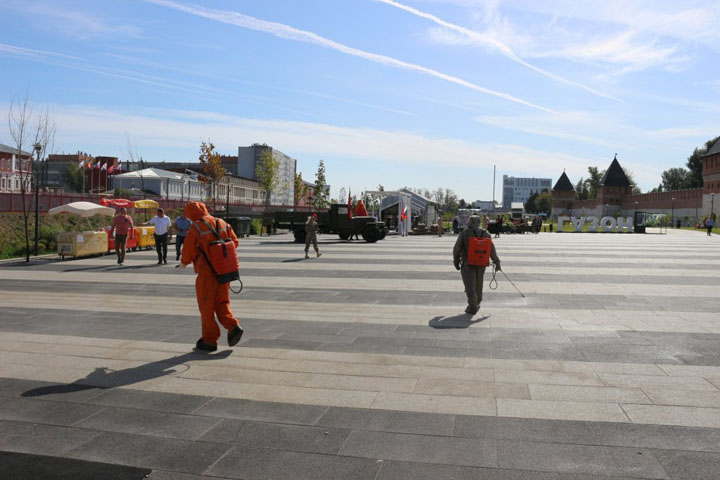 Обработка происходят в целях профилактики распространения инфекционных заболеваний. Перед проведением культурно-досуговых программ на открытых пространствах обеззараживанию подлежат: фасады домов, тротуары, скамейки, площадки, памятники, малые архитектурные формы вблизи мест массового пребывания людей, сообщает пресс-служба МЧС России по Тульской области.