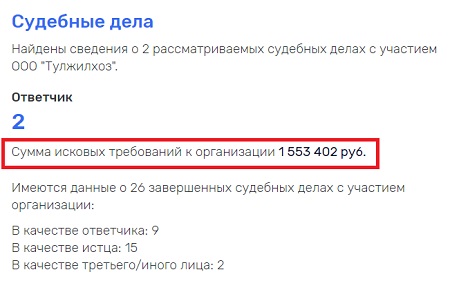 14. ООО «Тулжилхоз» (г.Тула) — в 2018 году прибыль 60 тысяч рублей,  в 2019 году — прибыль 126 тысяч рублей, исковые требования на 1,5 миллиона рублей.