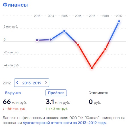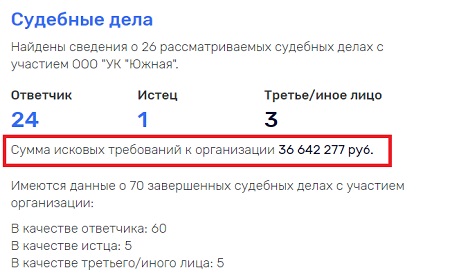 15. ООО УК «Южная» (г.Тула) — в 2018 году убыток 1,2 миллиона рублей,  в 2019 году — прибыль 3,1 миллиона рублей, исковые требования на 36,6 миллионов рублей.