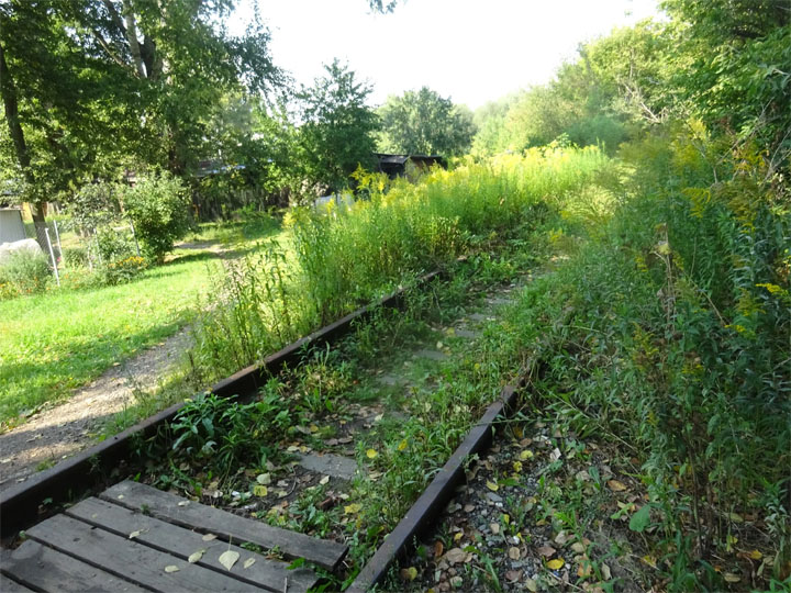 Далее мы вышли на недействующий подъездной путь РТИ, где частично протоптаны тропинки местными жителями.