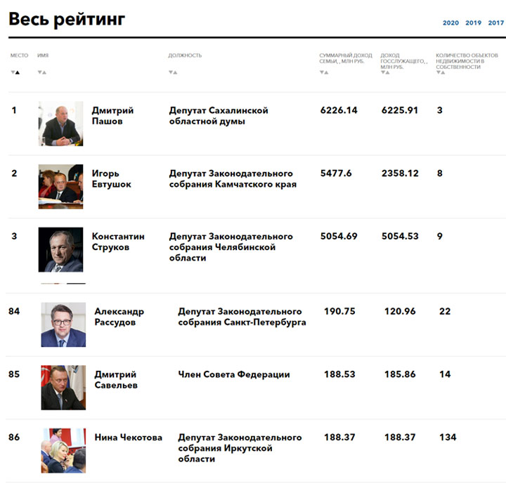 Аналитики издания изучили декларации более 400 ведомств и структур органов власти, выбрав в качестве ранжирующего показателя семейный доход. Это сумма дохода представителя власти, его супруга или супруги и их несовершеннолетних детей.
