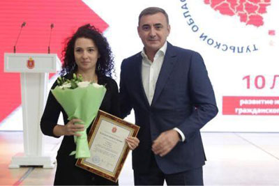 На фото жена министра молодежной политики Инна Давлетшина, получившая региональную награду из рук Губернатора в День Общественной палаты.