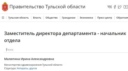 На сайте правительства Тульской области до сих пор присутствует некая Малютина И.А.
