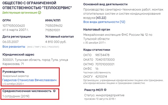 А с 5 октября 2020 гола новым директором компании стал заслуженный ликвидатор компаний Станислав Вячеславович Гаврилов, он же является единственным сотрудником этого предприятия.
