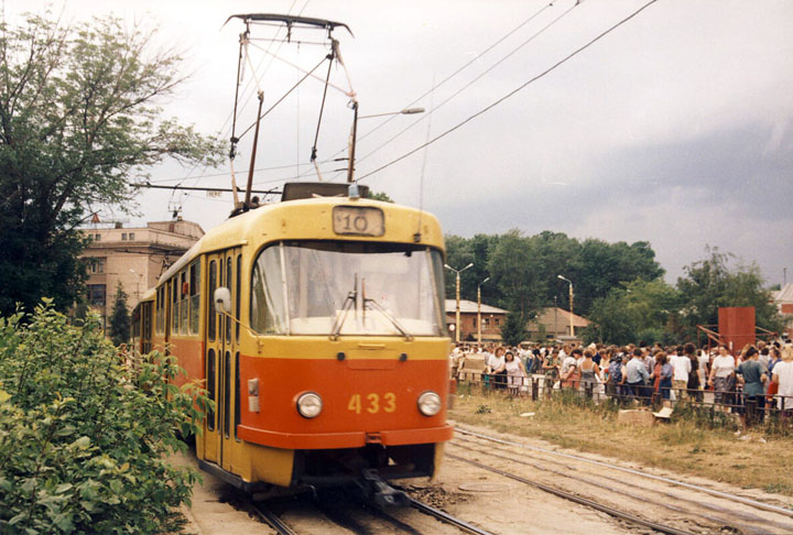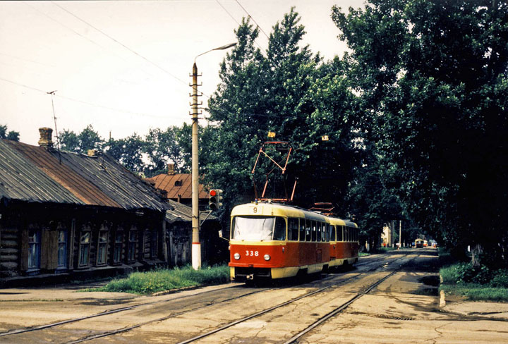 1994 год, ул. Марата 1987 год, ул. Коминтерна, я помню эту улицу очень зеленой, деревья на иных участках чуть ли не касались стекол окон вагона, а еще тут было ответвление до ВРМ и автобусный парк ПАТП-3