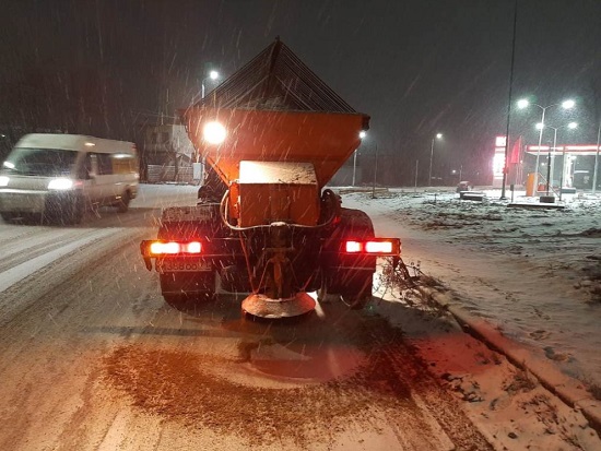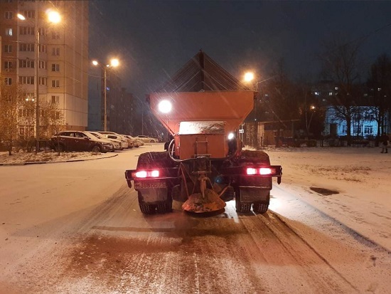 Расход противогололедного материала на 8.00 утра составил порядка 1100 т песчано-соляной смеси и противогололедного реагента.