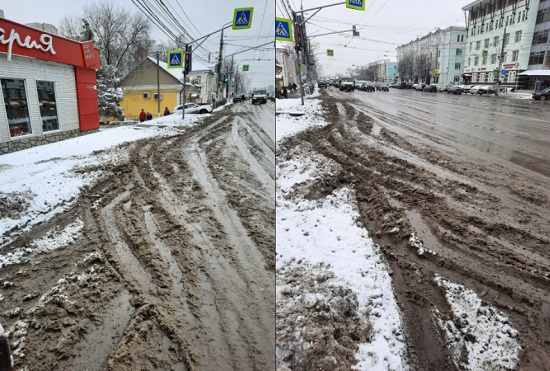 Снег с песком это жуткое болото посреди города. Страдают люди, не могут проехать машины. А всё потому, что снег убирать дорого.