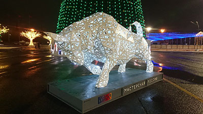 На площади Ленина в Туле поселился символ наступающего 2021 года — белый металлический бык. Напомним, по Восточному календарю именно это животное является хозяином следующего года. Сейчас он обосновался рядом с главной елкой региона.