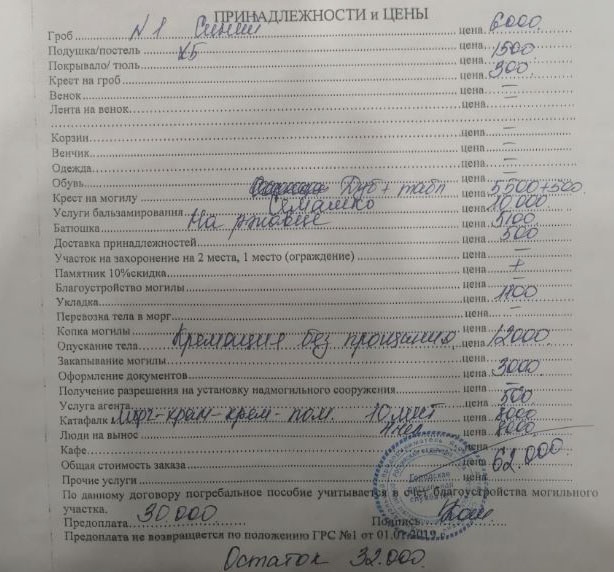 На то, чтобы проводить супруга в последний путь Милованова должна была заплатить 62 000 рублей. Почти половину – 30 000 рублей – женщина внесла в качестве предоплаты.