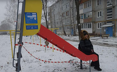 Качели и лестница обозначены сигнальной лентой – вероятно, пользоваться оборудованием пока нельзя. Авторы видео отмечают, что ситуацию пытаются исправить уже два года: