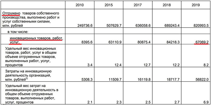 Оказывается, журналисты почему-то приняли все отгрузки за отгрузки инновационных товаров, работ, услуг, хотя ошибиться в данных было очень трудно.