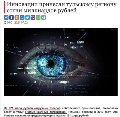 Итак, на самом деле инновации принесли тульскому региону в 2019 году не сотни миллиардов рублей, а всего лишь 67 млрд рублей. Но громкий заголовок о сотнях миллиардов рублей, которые якобы принесли нашей области инновации, уже разошелся по новостным сайтам.