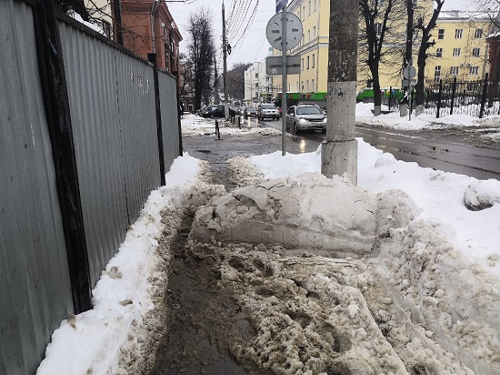 От жителей Тулы снова поступили жалобы на уборку тротуаров. Через огромные грязевые кучи можно только перелететь, пройти — невозможно.