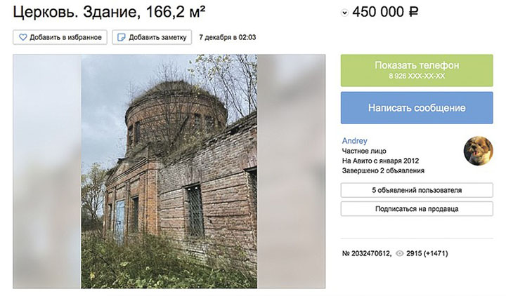 Это далеко не первая история с продажей храма на сайте частных объявления.
