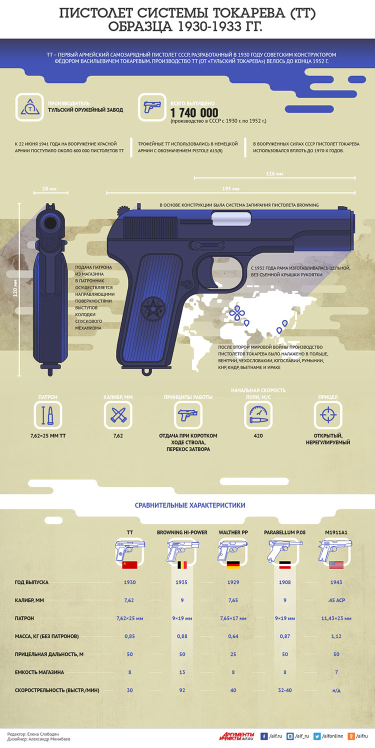 13 февраля 1931 г. на вооружение Красной Армии был принят «7,62-мм самозарядный пистолет образца 1930 года», до сих пор более известный как ТТ, Тульский Токарева. Через десятилетие дедушке всех советских и российских пистолетов стукнет 100 лет.