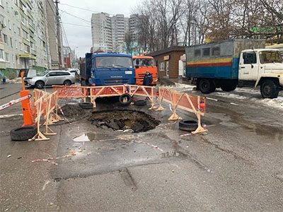 Вероятно, последней каплей в прямом и переносном смысле для асфальта стали реки талого снега, образовавшиеся из-за оттепели.