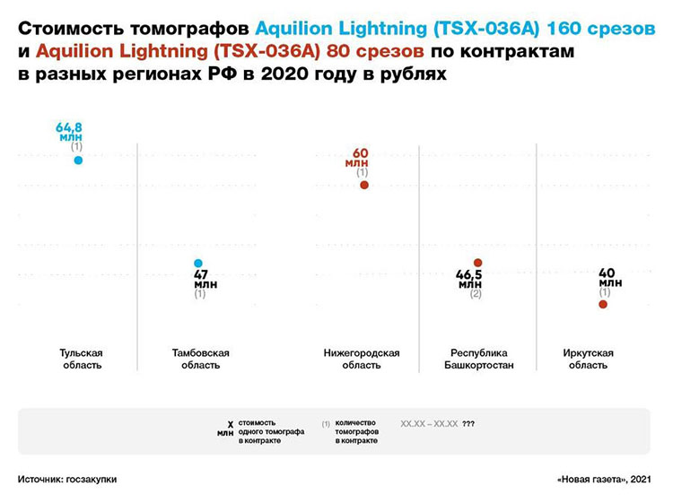 17,8 млн руб. составила разница в цене между Тульским областным онкологическим диспансером и Тамбовской областной детской клинической больницей, которые покупали томограф Aquilion Lightning на 160 срезов.