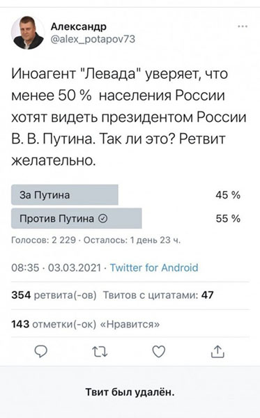 Столь высокий результат (сорок пять процентов) можно объяснить только тем, что опрос был сделан среди своих подписчиков, открытый опрос был бы более удручающим.