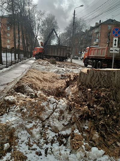 Ничего нового, всё отвратительно по-прежнему, по-тульски: на ул. Мориса Тореза под корень спилили 7 больших, оживающих после зимней спячки тополей…