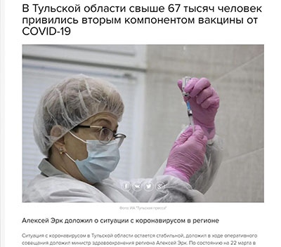 22 марта тульские СМИ сообщили, ссылаясь на Вас, что свыше 67 тысяч человек вакцинированы вторым компонентом вакцины от коронавируса:
