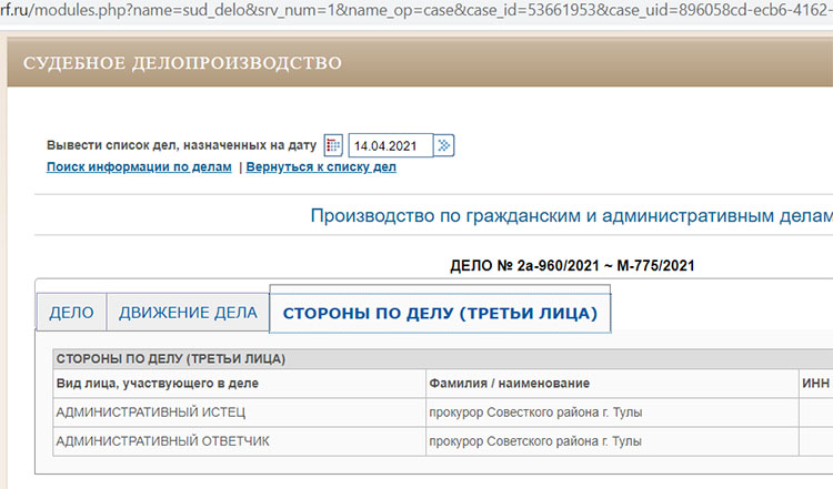 Например, на сайте Советского районного суда города Тулы есть такая информация: