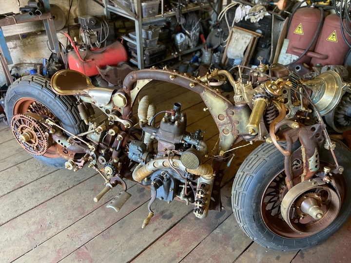 Туляк собрал байк из корабельного фонаря, мясорубки и будильника
