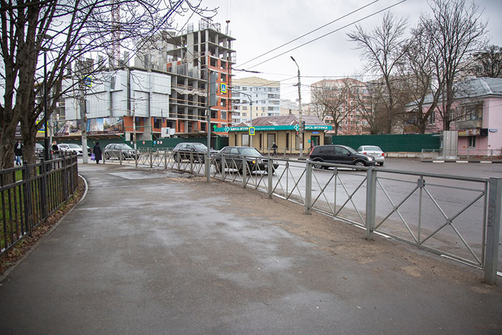 Заборы скоро вернутся на прежние места, но будут короче. Что останется неизменным, так это двойные ряды железных охранников. Такие есть, например, улице Болдина, где серый забор отделяет пешеходов от дороги, а черный – от сквера. Чтобы посидеть на лавочке, людям приходится делать крюк. Неудобно? Возможно. Некрасиво? Может быть. Но хотя бы жизнью рисковать не приходится. Чего не скажешь об ещё одной тульской улице, где забор выдавливает пешеходов на дорогу – такое происходит на Красноармейском проспекте.