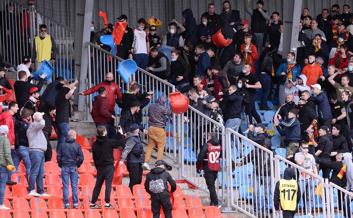 Во время матча «Арсенал» — «Спартак» фанаты обеих команд, расположившиеся в соседних секторах, вырвали сиденья с трибун и бросали их друг в друга. Инцидент случился в первом тайме.
