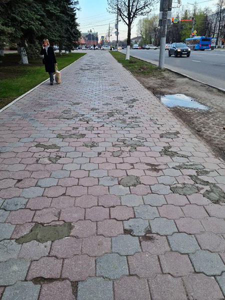 – 5 мая, ремонт плитки на пешеходной дорожке. Остановка «Стадион», самый центр города… — пишет наш [myslo.ru] читатель Дмитрий Нефедов.