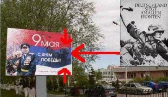 Уж сколько лет наблюдаю одну и ту же картину, каждый год к Девятому Мая пресловутые «девочки-дизайнеры» рисуют какую-нибудь лютую [ерунду]. Где на баннерах бегут солдаты вермахта, летят фоккевульфы и вместо ППШ стреляют шмайсеры.