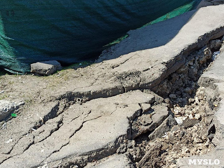 Туляки сообщают о полутораметровом провале грунта и асфальтового покрытия в районе стройки