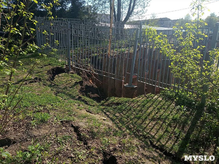 Сейчас аварийное место дополнительно огородили. По всей видимости, грунт провалился из-за проливных дождей, которые шли в последние дни. Земля ушла в районе котлована на полтора метра вниз.