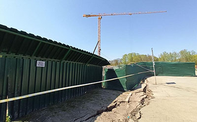 Сейчас аварийное место дополнительно огородили. По всей видимости, грунт провалился из-за проливных дождей, которые шли в последние дни. Земля ушла в районе котлована на полтора метра вниз.