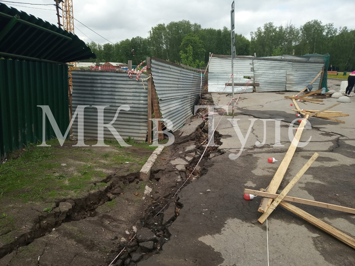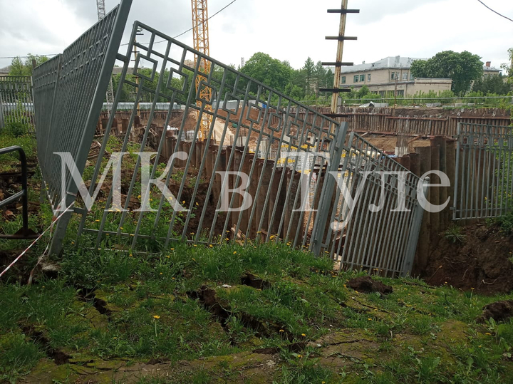 19 мая на стройке аквапарка около Центрального парка имени П.П. Белоусова в Туле местные жители обнаружили новые провалы грунта и провалившийся забор.
