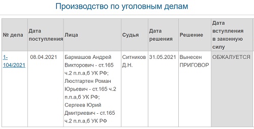 Два раза, 28.04.2021 и 27.05.2021 гг., судебное заседание откладывалось и вот 31.05.2021 г. в 18.15 было окончено приговором.