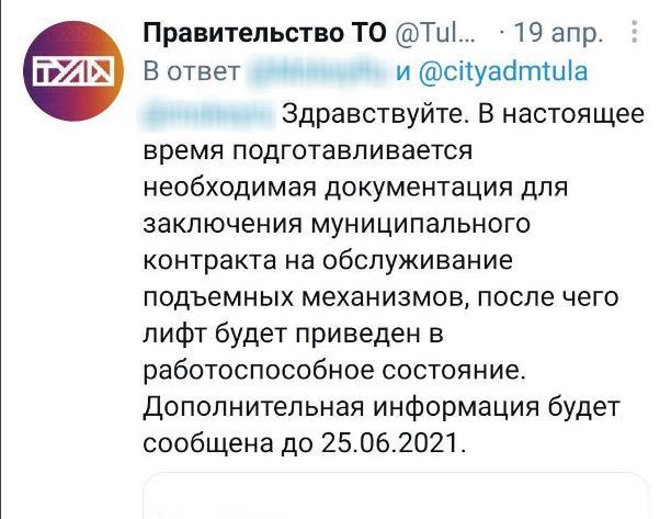 А пару дней назад с официального аккаунта пришел новый ответ о том, что сейчас идут поиски источника финансирования для работы лифта: