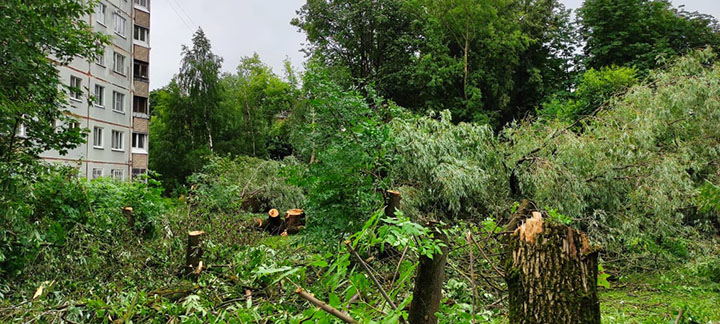 Врезка «Тульской прессы»: В редакцию «Тульской прессы» обратились жители областного центра. Они рассказали, что в дворе дома №5 (корп. 2) по улице Циолковского уничтожают здоровые деревья, однако проводимые ЖЭУ работы были заявлены как кронирование.