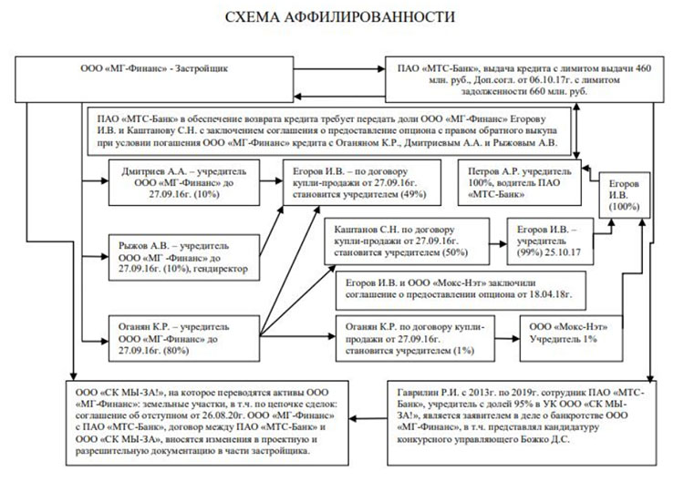 Вот такая схема представлена кредитором в заявлении в Арбитражный суд: