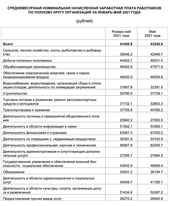 По состоянию на май 2021 года номинальная заработная плата в тульском регионе превысила 43 тысячи рублей. За январь-май величина составила 41450 рублей