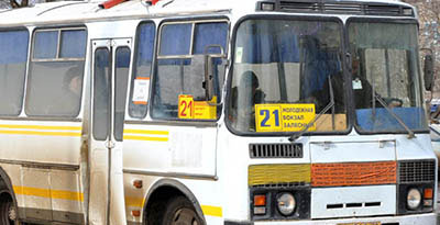 И это висит в общественном транспорте — пазик маршрут 21, номер У 986 ВС.