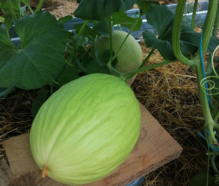 К слову сказать, не только щами сыт человек, нам еще и экзотику подавай! И это получается, если постараться. Арбузы и дыньки уже начали созревать, тут жаркое лето как раз на руку. Обычные «Огонек», «Торпеда» и «Колхозница» по заоблачным ценам пусть гниют в магазине, а мы наслаждаемся «Пекинской радостью» и «Канарией». Кстати, имея ввиду заморское происхождение, супруг прозвал морщинистую, похожую на косточку от персика, дыню «Канарская желтая» — эфиоп твою мать, так теперь ее и зовем. Дыня «Колхозница» тоже есть, но бесплатная, и от этого она еще вкусней!
