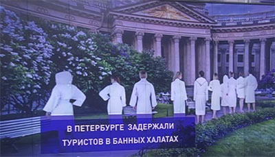 У них был выездной тимбилдинг. Два десятка девушек в банных халатах с корпоративной символикой хотели сделать фото на фоне Казанского собора.