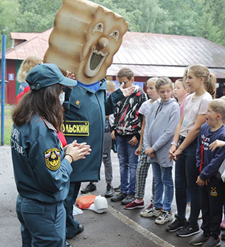 Пряник Тульский рассказал ребятам о пожарной безопасности и о правильных действиях при возникновении пожара. Также для них организовали викторину. Спасатели показали детям каски, огнетушители, стволы для тушения, рассказали о последствиях пожаров.