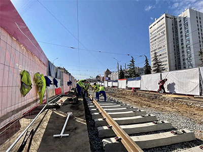 Как сообщил начальник городского управления по транспорту и дорожному хозяйству Дмитрий Ярцев, на первом участке [от Советской от Коминтерна до Союзной] полностью снято старое покрытие, уложены рельсы и шпалы, сейчас в настоящее время ведется балластировка трамвайного пути, на втором участке [от Союзной до Красноармейского проспекта] и на третьем участке [от Красноармейского проспекта до улицы Фридриха Энгельса] идет монтаж рельс и шпал.