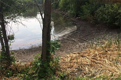 Водоем, где обитают утки и находится зооуголок, постепенно мелеет
