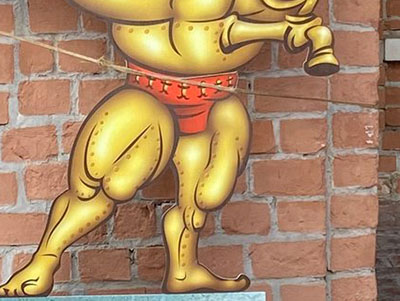 Кто же делает такие карикатурные образцы? То блоху соорудили в ликёрке, то этот дибилизм. И кто разрешает ставить это убожестве в городе?