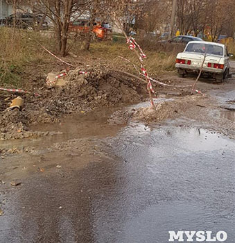 Порыв на водопроводе между домами № 85 и 75 по ул. Токарева в Туле случился еще летом. С тех пор тысячи кубометров воды утекло, а кто должен чинить порыв, до сих пор непонятно.