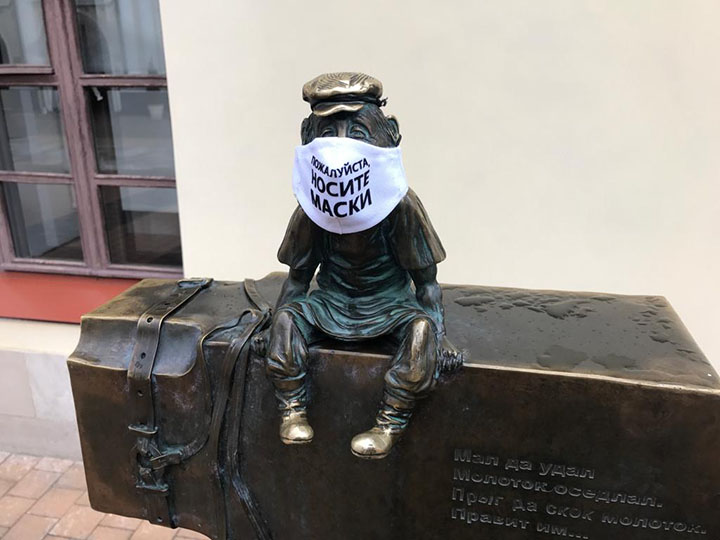 Средства индивидуальной защиты оказались на лицах городового, установленного у стен Тульского кремля, мужичка-тулячка, расположенного на улице Металлистов и металлурга в Пролетарском округе города.
