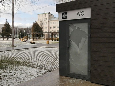 В Новомосковске от рук вандалов пострадало общественное имущество, расположенное на Центральной площади. Там неизвестные хулиганы разгромили новый общественный туалет.